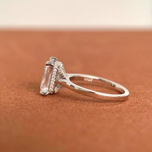 CGSRING 14K ホワイトゴールド 婚約指輪 4カラット ラディアント カット エンゲージリング ソリッド 14K ホワイトゴールド モアッサナイト リング 女性用