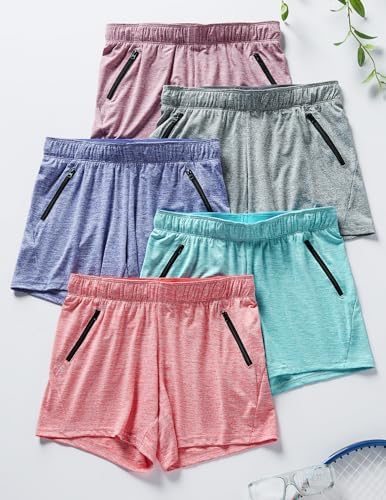 (リバティインポーツ) Liberty Imports ヨガトレーニングショーツ ヘザー レディース 速乾 ジッパーポケット付き 5枚パック