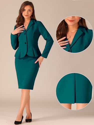 Allegra K Business 2ピーススーツセット レディース 長袖 ノッチドラペプラム ブレザー ペンシルスカート
