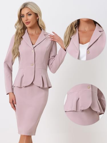 Allegra K Business 2ピーススーツセット レディース 長袖 ノッチドラペプラム ブレザー ペンシルスカート
