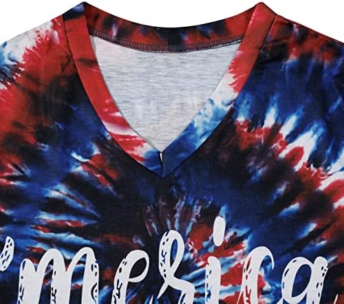 Womens 4th July Tshirt Fashion Patriotic V-neck Memorial Day T-Shirt Blouse
