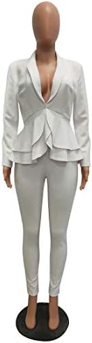 Aro Lora レディース 2ピースアウトフィット カジュアル 無地 前開き ブレザー ペンシルパンツ スーツセット US サイズ: X-Large カラー: ホワイト