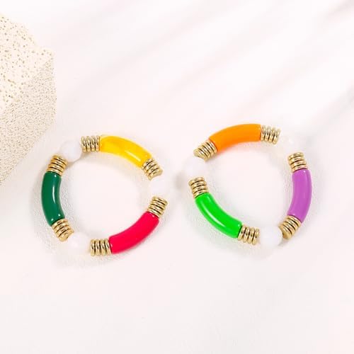 バンブーチューブバングルブレスレット 分厚い 曲線 スタッキング クリアアクリル カラフルビーズ 伸縮性 友情 ゴールドブレスレット 親友 カップル 家族 兄弟 姉妹 恋人へのギフトに, アクリル, 宝石なし