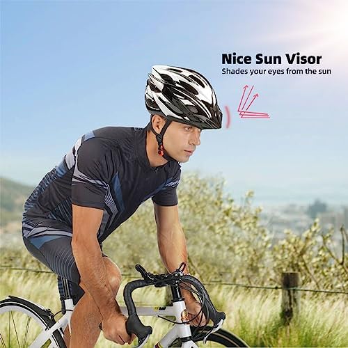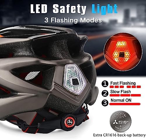 BASECAMP 自転車 ヘルメット 大人用 LEDライト ロードバイク ヘルメット サイクリングヘルメット 超軽量 サンバイザー付き 虫対策 予備用電池付き CPSC認定済み 電動自転車 ヘルメット 57-62cm 調整可能 軽量 透气性 男性 女性 通勤 通学 Lサイズ 収納袋付き(BC-010)