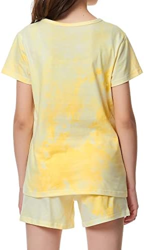 タイダイパジャマ 女の子用 - コットン100% キラキラ 蝶 猫 夏 半袖 パジャマセット トゥイーン 服 サイズ 4T - 18, Sleepover Squad, 10