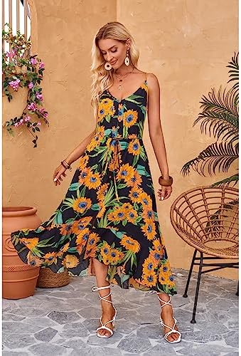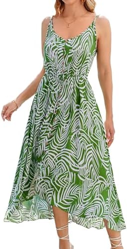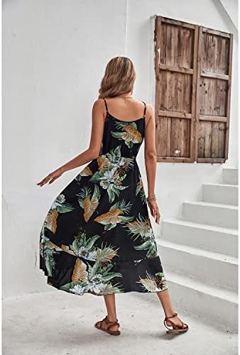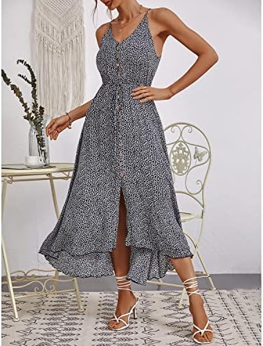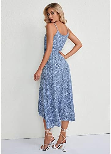 BROVAVE女性' ;s 2024サマーカジュアルボヘミアSundress波点スパゲッティストラップVネック飄逸サイレンワンピース