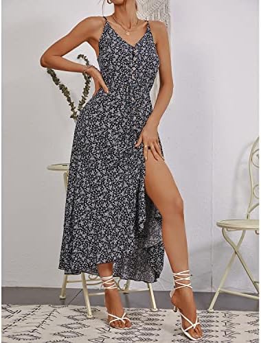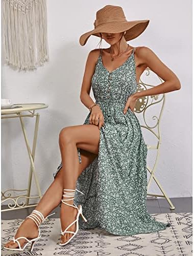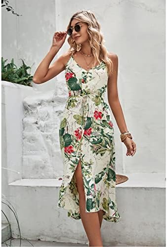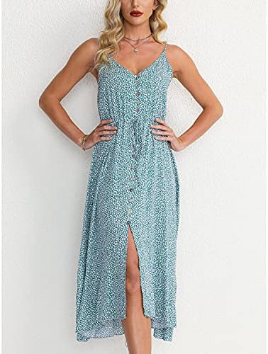 BROVAVE女性' ;s 2024サマーカジュアルボヘミアSundress波点スパゲッティストラップVネック飄逸サイレンワンピース