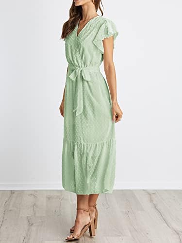 BTFBM Women's Summer Casual Wrap V Neck Beach Party Flowy Ruffle Midi Dress