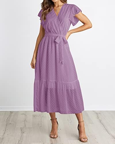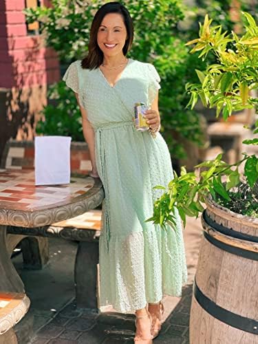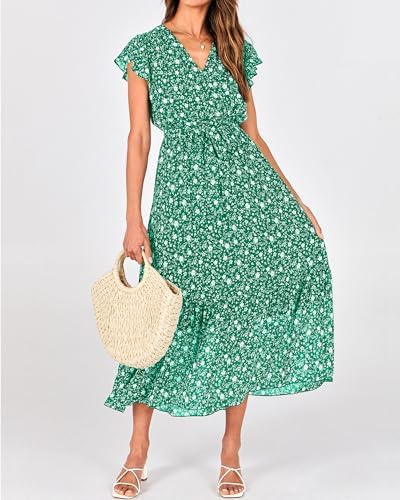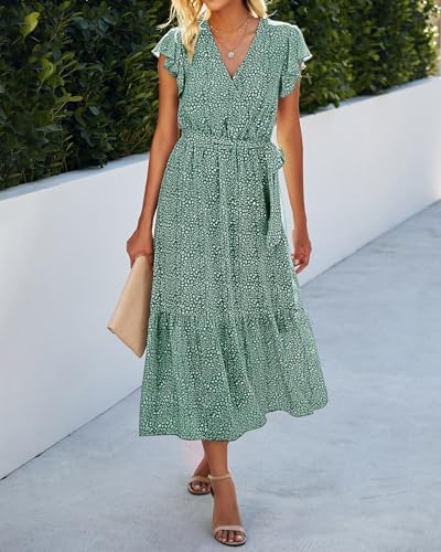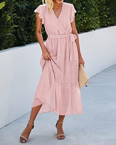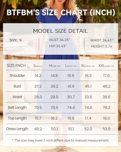 BTFBM Women's Summer Casual Wrap V Neck Beach Party Flowy Ruffle Midi Dress
