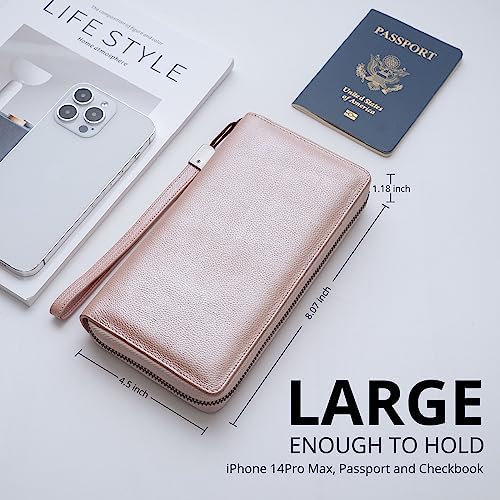 ラビミさん' ;s RFID封鎖100%革大容量ファスナー財布携帯スタンドクラッチ旅行財布手首保護