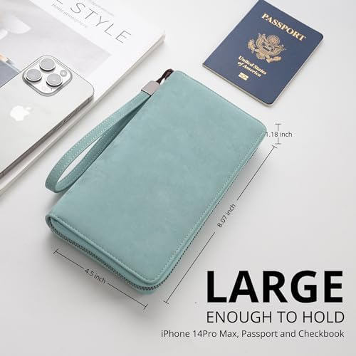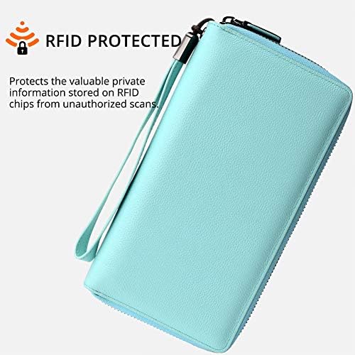 Travelambo レディース 財布 大容量 RFIDブロック 本革 リストレット 財布, ピーコックブルー