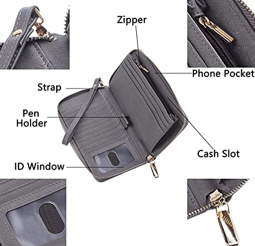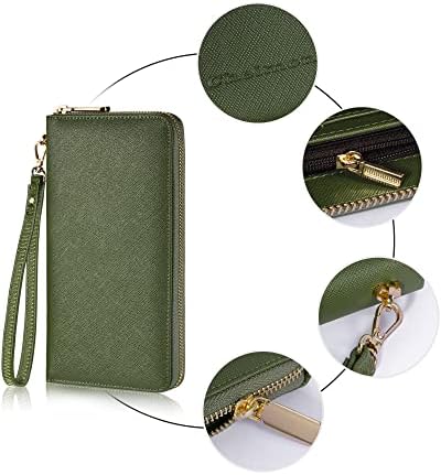 ラビミさん' ;s RFID封鎖100%革大容量ファスナー財布携帯スタンドクラッチ旅行財布手首保護
