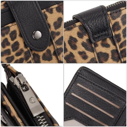 CLUCIレディースポーチレザー二つ折りマルチミニカードホルダー主催者デザイナーレディースファスナーコイン、取り外し可能身分証明書ウィンドウ付き