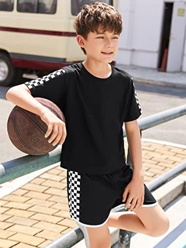 CNJFJキッズサマースポーツTシャツとショートパンツセットチェックプリント衣装セットスポーツウェア