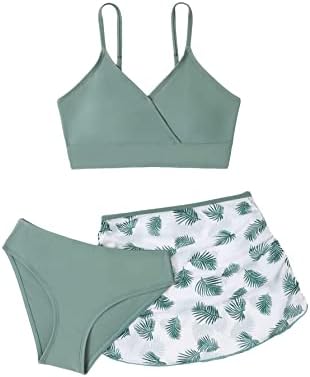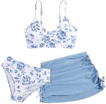 COZYEASEガール' ;3枚組のフラワープリントビキニ水着にドローストリップビーチスカートかわいいプリーツ水着