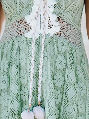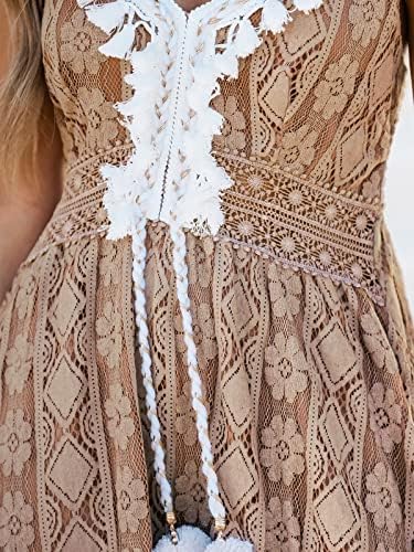 CUPSHE女性' ;s MaxiワンピースレースワンピースボヘミアンフリンジVネックフレアフリル調節ストラップビーチサマーロングスカート