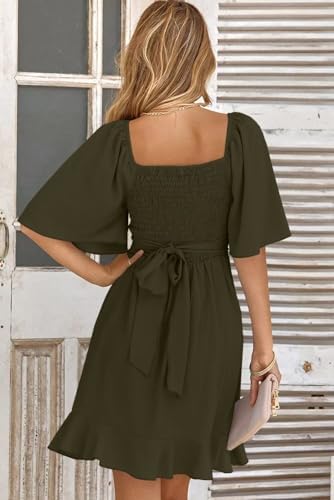 Dokotoo女性' ;sバッグVネック半袖ウエディングゲスト用ワンピーススモーキーストレッチウエストレイヤーベルトフリル裾ミニスカート