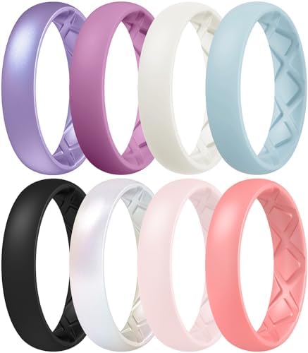 Egnaro レディース 通気性あり インナーアーク シリコン 結婚指輪 記念日リング 幅4mm - 厚さ1.5mm - 8リング / 7リング / 4リング / 1リング