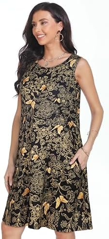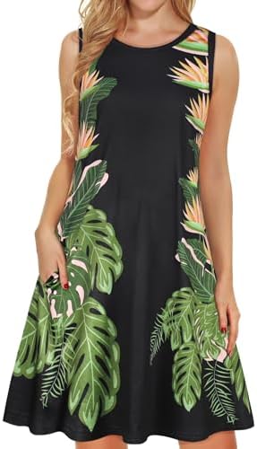 Summer Dresses for Women Beach Floral CasualPockets Sleeveless Sundress