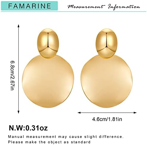 FAMARINE ビッグディスク ドロップイヤリング ゴールド ダングル イヤリング ラウンド ハンマーイヤリング レディース, 真鍮, 宝石なし。
