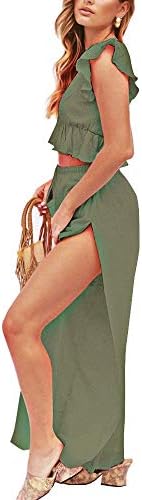 女性用セクシーフリルワンピーススパゲッティストラップ迷彩トップスタイトロングスカートクラブパーティースカート2点セット