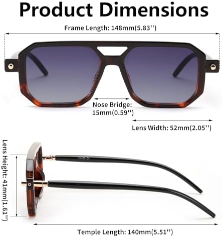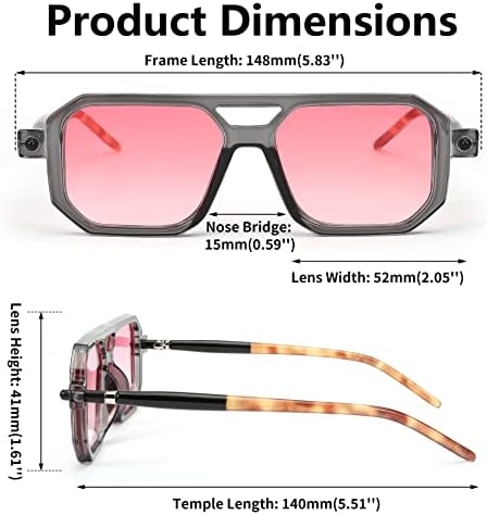FEISEDY Lentes de sol Cuadrado Aviador Vintage Mujeres Hombres, Gafas de sol Elegante Marco Retro Clásico UV400 B2622