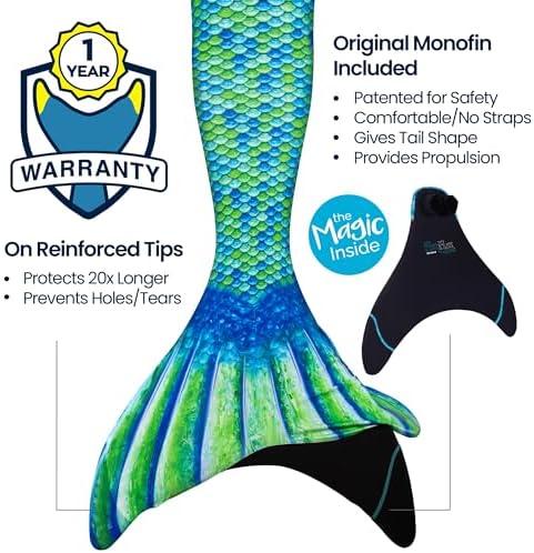 Mermaidens マーメイドテールで泳ごう! Fin Fun (フィン・ファン)のMermaidensマーメイドテールでマーメイドに変身! 当社の子供・大人向けの泳げるマーメイドテールは、あらゆる方向に伸び、色あせしないプレミアム生地でできた独特の模様が特徴で、プールでもビーチでも楽しい時間を過ごせます! さらに、特許モノフィンを備えた、市場で最も高品質なマーメイドテールであり、快適・高機能で、水中で取り外すのも簡単です。