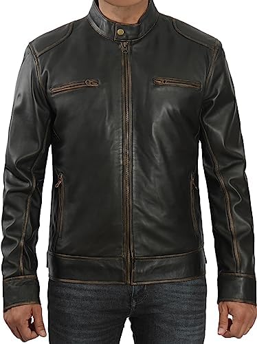 fjackets Men';sバイク革ジャケット-レトロモダンで柔らかな羊革の本革自転車ジャケットメンズ
