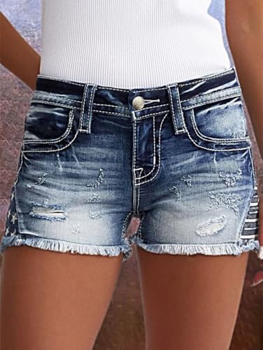 MODARANI カットオフ デニムショーツ レディース ほつれ加工 ジーンズ ショート キュート ミッドライズ リップド ホットショーツ 快適 伸縮性