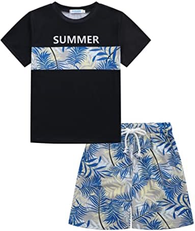 GERUボーイズショートパンツスーツハワイアンウェアKid Leavesフラワー半袖シャツトップス+ショートパンツセット