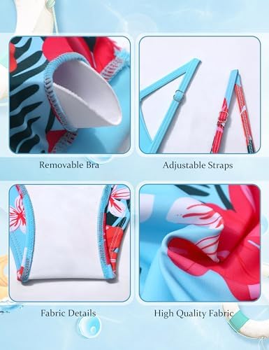 女の子水着、水着3点セットトロピカルフラワークロスビキニセット女の子&39 ;スカートカバー水着7-16 T