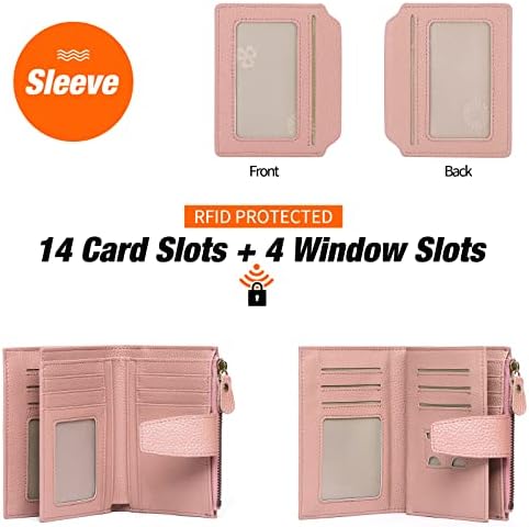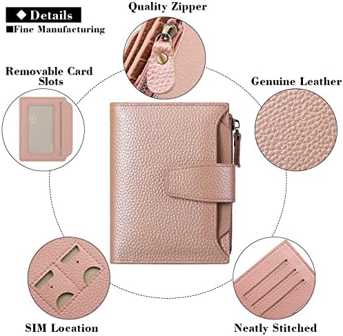 [Luckele] YINHEXI Wallet Card Holder, Small Bifold RFID Blocking Purse, Cute Small Leather Pocket Wallet for Women, Girls, Ladies (Baby Pink)