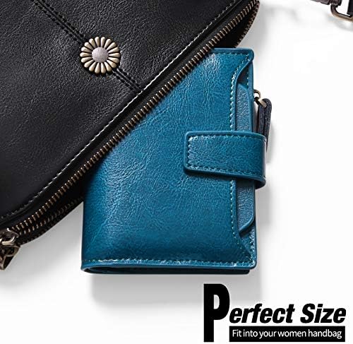 GOIACII レディース 財布 本革 RFIDブロック 二つ折り ファスナーポケット カードホルダー IDウィンドウ付き, A01 ワックス ピーコックブルー, S, ミニマリスト