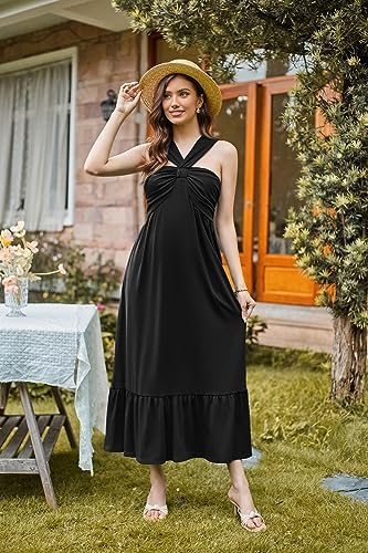GRACE KARIN 2024女性' ;s Criss Cross HalterneckノースリーブサマーフラワープリントFlowy A Line Maxiワンピース