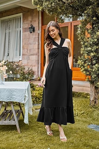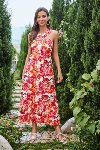 GRACE KARIN 2024女性' ;s Criss Cross HalterneckノースリーブサマーフラワープリントFlowy A Line Maxiワンピース