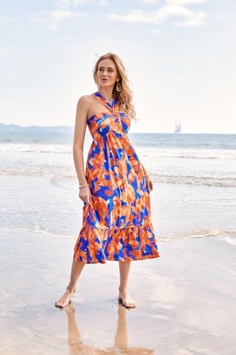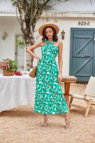GRACE KARIN 2024女性' ;s Criss Cross HalterneckノースリーブサマーフラワープリントFlowy A Line Maxiワンピース