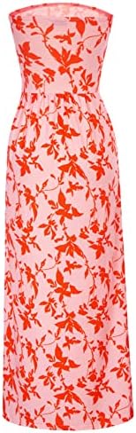 Women 2023 Summer Bohemian Floral Printed Strapless Beach Party Long Maxi Dress