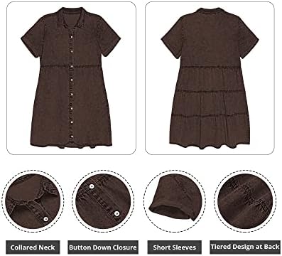 GRAPENT Women's Denim Short Sleeve Button Down Babydoll Tiered Swing Shirt Dress