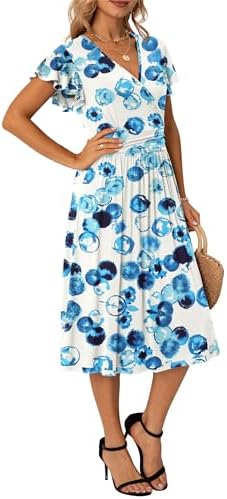 GRECERLELレディース春夏ワンピースカジュアルフリル半袖Vネックワンピースポケット付き