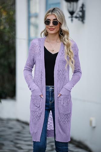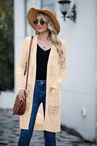 GRECERLELレディース軽量ロングカーディガン長袖カジュアルかぎ針カーディガンポケット付き