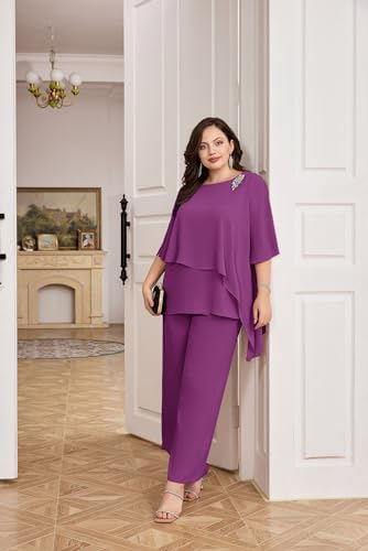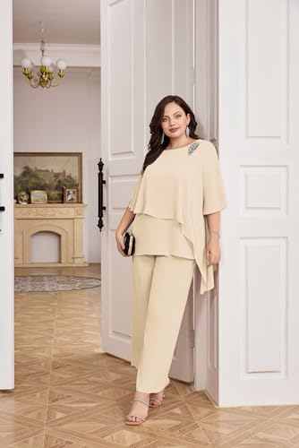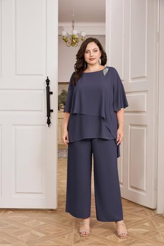 Hanna Nikoleラージサイズ花嫁ママパンツセット2枚セットシフォンセットプリーツレイヤーブライダルゲストセット