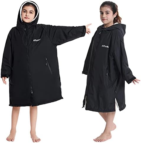 Hiturbo保温子供用水泳パーカーコート:防水更衣-大サイズ水着-フード付きサーフィンマント-厚手の裏地(7-14 Y)