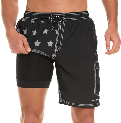 HODOSPORTSメンズ' ;s 9;圧縮ライニング付き水泳パンツの急速乾燥(通常および延長サイズ)