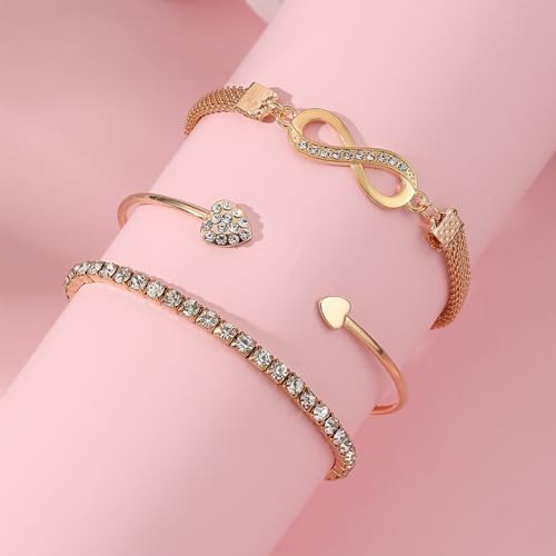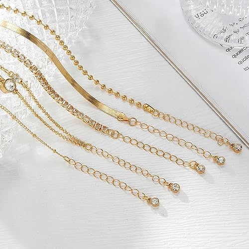 IFKM 女性用ゴールドブレスレット 14Kゴールドメッキ 華奢なレイヤードチェーンブレスレット 調節可能なかわいいチャームバングルリンクブレスレットセット, ステンレス鋼