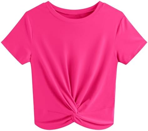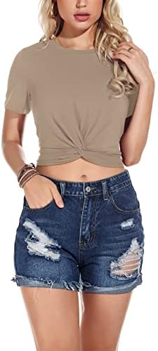 *Features:Short Sleeve crop top,Round Neck, Twist Front Tee,Casual crop top,Summer tees,Women Short Sleeve tshirts.