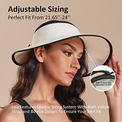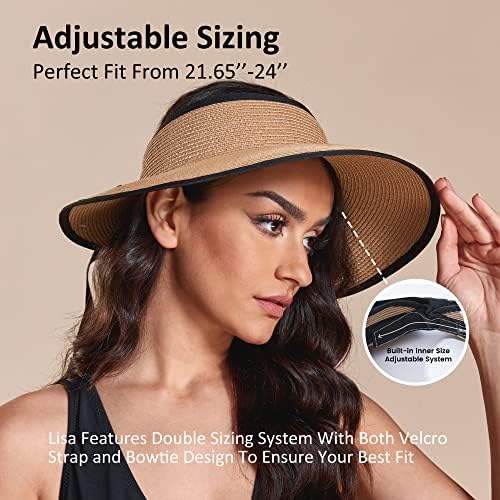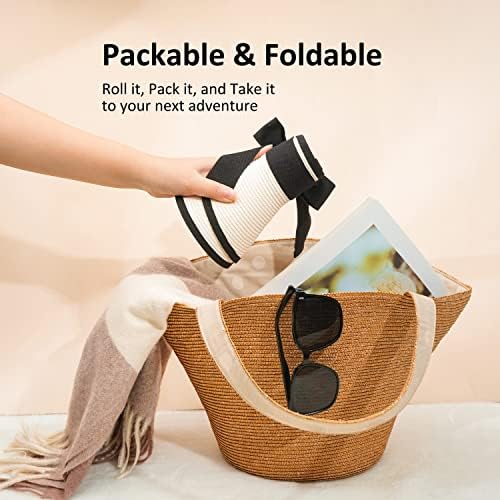 Joywwantレディースサンバイザー、レディース&39 ;s夏のポニーテール折り畳み可能な草製ビーチハット、UPF 50+