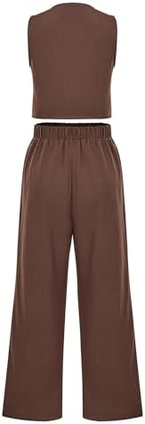 KIRUNDOレディース2点セット夏のおしゃれボタンVネックの臍出しタンクトップスーツとワイドパンツのセットアップ