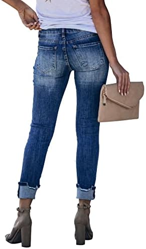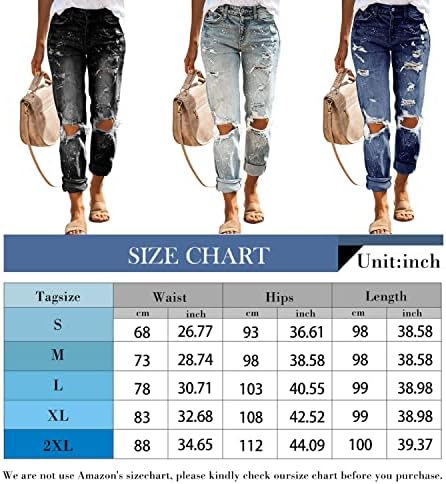 KUNMI女性' ;s開叉中腰ボーイフレンドジーンズゆったりフィット穴あきストレッチデニムパンツ