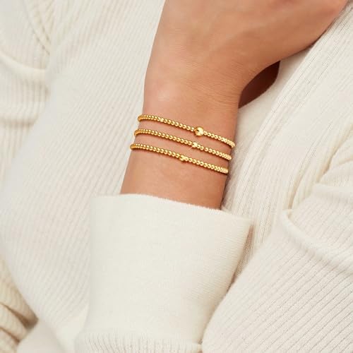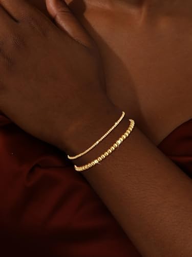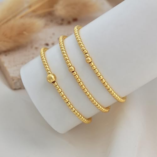 koperin ゴールドレイヤードビーズブレスレット 女性用 上品な14Kゴールドメッキ ビーズブレスレット トレンディな重ね付け可能なブレスレットセット レディース ガールズ ゴールドジュエリーギフト 2mm/4mm/6mm 6.5インチ