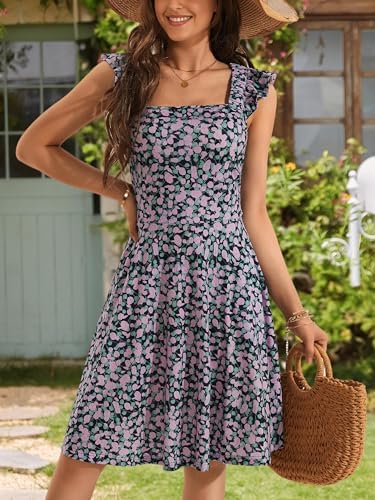 LOEMES Beach Dresses for Women 2024 Cute Floral Casual Summer Dresses for Women